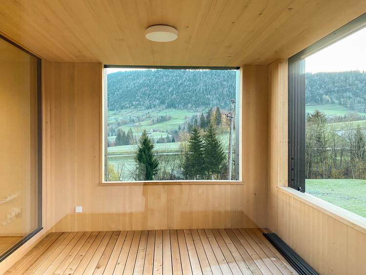 Der Einsatz von Holz bei der Schindelfassade und der Innenausstattung sorgt hier für die Eingliederung der Objekte in das Umfeld und steigert zugleich den Wohlfühlfaktor für die Bewohner. „Zudem hilft Holz beim Energiesparen", erklärt Morscher, „denn Räume mit unbehandelten Holzböden und Wandelementen werden als behaglicher empfunden", erklärt er. Allein dadurch ließe sich die Raumtemperatur ohne Komfortverlust um etwa ein halbes Grad senken.