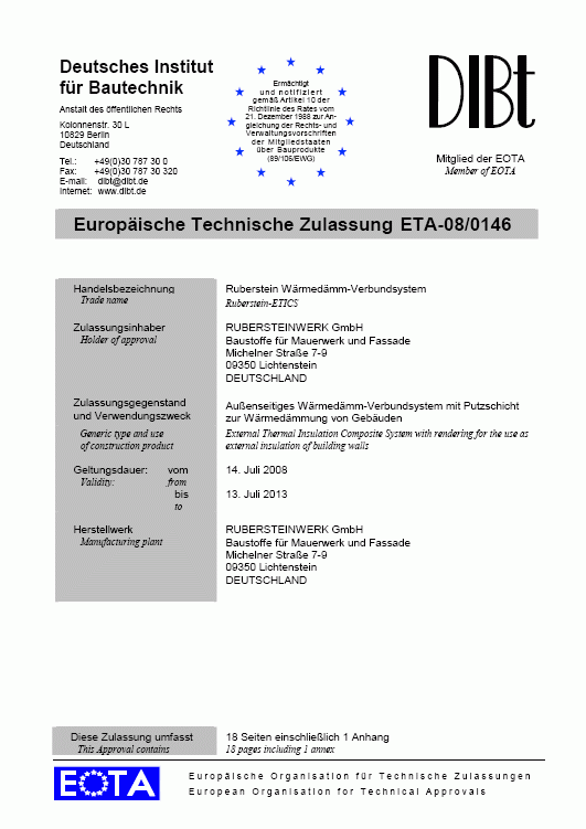 Musterbeispiel: So sieht eine allgemeine bauaufsichtliche Zulassung (abZ) aus.