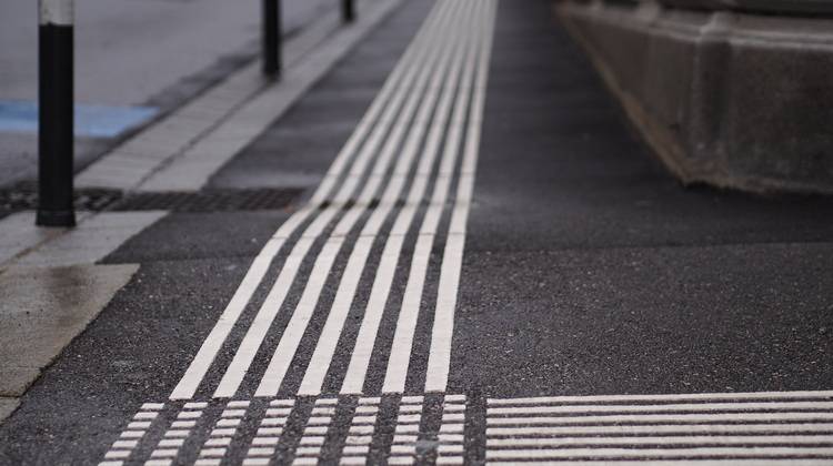 Bodenindikatoren unterstützen blinde und sehbehinderte Menschen bei der sicheren Navigation öffentlicher Verkehrsflächen. Die taktilen Leitsysteme bestehen aus Leitstreifen auf dem Boden, die sich mit einem Blindenstock ertasten lassen und sich farblich von ihrer Umgebung absetzen.