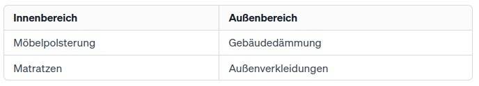 Der Stoff findet breite Verwendung in verschiedenen Bereichen. Im Innenbereich wird es oft als Schaumstoff in Möbeln oder Matratzen verwendet. Im Außenbereich findet es Anwendung als Hartschaum für Dämmmaterialien.
