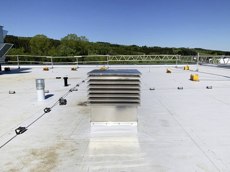 Hier ergeben sich Änderungen vor allem bei der Entrauchung von Aufzugsschächten (Bild 1) bzw. Fahrschachtbelüftung [4]. Diese besteht oftmals schlichtweg aus einer freien Öffnung am obersten Punkt des Aufzugsschachtes. Da solche Öffnungen häufig mehr als 0,1 m2 umfassen, wirkt sich dies sehr negativ auf den Energiehaushalt aus. Hatte man diese bislang für den Test abgedichtet, lässt dies der nationale Anhang zur DIN EN ISO 9972 nicht mehr zu.