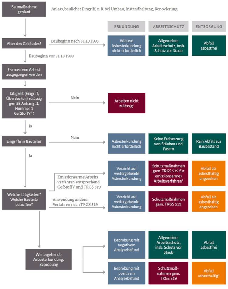 Unter anderem wurde nunmehr im Rahmen der Aufklärung und Erkundung die "Leitlinie für die Asbesterkundung zur Vorbereitung von Arbeiten in und an älteren Gebäuden" herausgegeben.