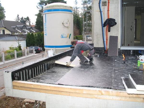 Die erste Herausforderung für den Fachhandwerker war bereits der unterschiedliche Flachdachaufbau. Die Villa weist drei verschiedene Flachdächer auf, die unterschiedliche Ausführungen benötigten: