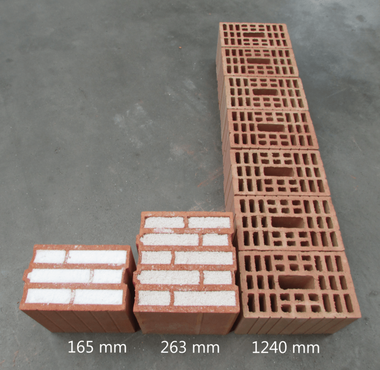 Ein Vergleich in einem speziellen Messgerät für Wärmeleitfähigkeit bei einer mittleren Temperatur von 10°C zeigt, dass die perlitgefüllten Ziegelsteine bei gleicher Struktur und Dicke um rund ein Drittel schlechter dämmen als der Aerobrick. In anderen Worten: Um die gewünschten Dämmwerte zu erreichen, muss ein eine Wand aus Perlit-Ziegelstein rund 35% dicker sein als eine Aerobrick-Wand.