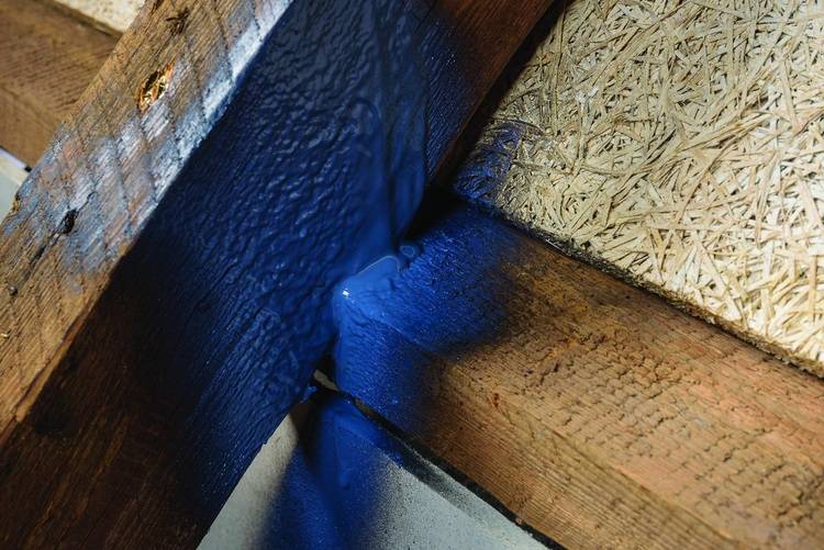 Das Verarbeiten von Aerosana Visconn mit sogenannten Airlessgeräten mag für manchen Handwerker zunächst ungewohnt sein. „Die meisten wollen aber gar nicht mehr aufhören, wenn sie es einmal probiert haben“, berichtet Jens-Lüder Herms. Er arbeitet in der Forschung und Entwicklung beim Luft- und Winddichtungsspezialisten Moll pro clima, der die Sprühfolie entwickelt hat. Außer mit seiner einfachen Anwendung dürfte das neue Produkt bei den Verarbeitern vor allem durch seine vielseitige Verwendbarkeit punkten. Aerosana Visconn eignet sich nicht nur zum Abdichten in der Fläche, auch sichere Bauteilanschlüsse lassen sich herstellen. Sogar der Einsatz als Haftgrundierung auf rauen oder staubigen Untergründen ist möglich. Wer gerade kein Spritzgerät zur Hand hat, trägt die pastöse Masse mit dem Pinsel auf.