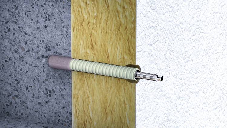 Größere und schwerere Anbauteile wie Klimageräte, Markisen, Rankhilfen und Vordächer lassen sich auch nachträglich mithilfe thermisch getrennter Befestigungselemente mit einem metrischen Absatzgewinde thermisch getrennt sicher befestigen. Der GFK-Montagestab mit aufgesetztem Edelstahl-Gewinde wird dabei durch die Dämmplatte mit Injektionsmörtel im Untergrund verankert. Ein Montagewerkzeug und eine Setzhilfe sorgen für die unkomplizierte und sichere Montage.