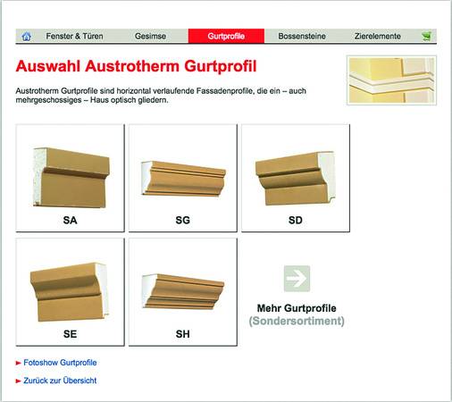 Mit dem Online-Tool Materiallisten-Generator vereinfacht Austrotherm die Auswahl, Planung und Kostenberechnung. Auf www.austrotherm.de unter der Rubrik Tools können Fenster- und Türumrahmungen, Bossensteine oder Zierelemente ausgewählt werden. Erhält man eine maßgeschneiderte Materialliste im PDF-Format.