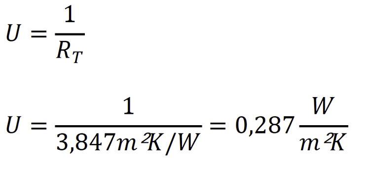 Der Kehrwert des Wärmedurchlasswiderstandes ergibt den U-Wert: