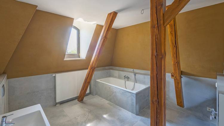 Um die Fassade in ihrer ursprünglichen Form zu erhalten, wurde das Gebäude von innen mit Holzfasern gedämmt. Als natürliches Material können sie Feuchte aus dem Mauerwerk aufnehmen und an die Luft abgeben. Das schützt vor Schimmel und sorgt im Inneren für ein angenehmes Raumklima.