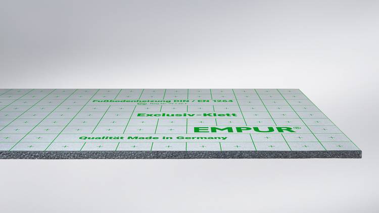 Alle Empur Pur-Therm Verbundplatten ermöglichen einen schnellen, wirtschaftlichen und flexiblen Aufbau auf dem Rohfußboden. Sie sind mit einer aufkaschierten, hochreißfesten Gewebefolie mit aufgedrucktem Verlegeraster (10 x 10 cm) ausgestattet, die den Tackernadeln Halt bietet und die Verlegung beschleunigt.
