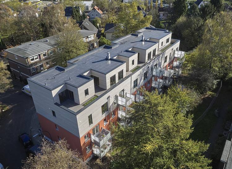Ein solches Bauvorhaben erhielt erst im letzten Jahr für seine gelungene Architektur eine Anerkennung beim Holzbaupreis 2020. Das Besondere: Kantstein Architekten stiegen dem alten Hamburger Wohnriegel aus den 1960er Jahren mit einem Holzaufbau und einer Mineralwolldämmung aufs Dach. Die Architekten schaffen aus ehemals ungenutzten Flachdachflächen in urbaner Nachbarschaft sehr nachhaltige, sichere und lebenswerte Wohn- und Außenräume. Ihr Sanierungsprojekt mit Holz und Mineralwolle ist deshalb prototypisch und beispielgebend für einen langlebigen und substanzerhaltenden Umgang mit Flachdachwohnhäusern der 1960er und 1970er Jahre.