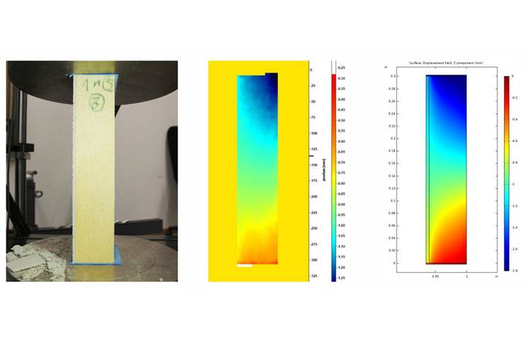 »Wir sind bei unserer Arbeit davon ausgegangen, dass das gesamte WDVS auf physikalische Eigenschaften und Vorgänge reduziert werden kann. Zwar gibt es beispielsweise zahlreiche Putzvarianten, allerdings können wir sie mit physikalischen Eigenschaften wie E-Modul und Festigkeit, Streckgrenze und Bruchdehnung, Wasseraufnahme und -leitung, Wärmeleit- und Wärmespeicherfähigkeit sowie Dicke ausreichend genau beschreiben. Das gilt genauso für den Dämmstoff oder den Holzuntergrund«, erklärt Rüther.