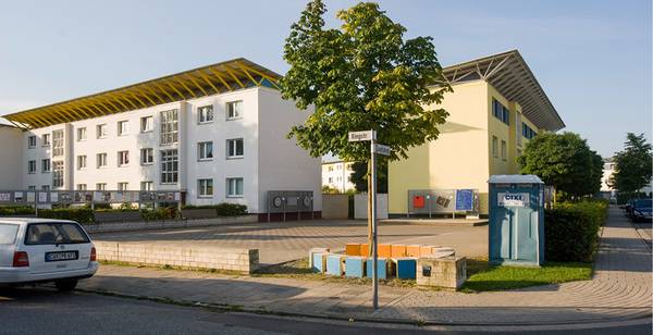 Der Umbau wurde mit dem Programm „Soziale Stadt“ zu etwa einem Drittel gefördert, wobei sich Wulsdorf inzwischen auch in eine ökologische Stadt gewandelt hat: Verglaste Balkone fangen das Sonnenlicht ein, die Dämmplatten an der Fassade sind klebefrei und damit rückbaubar mit dem sogenannten Stellfuchssystem befestigt [6], die aufgesetzten Flugdächer aus vorgefertigten Holzfachwerkbindern schützen die auf die Flachdächer aufgelegte Wärmedämmung und grüne Hecken haben trostlose Zäune ersetzt. Was die Versorgung mit Heizung und Warmwasser angeht, befindet sich Wulsdorf auf dem Weg zum CO2-neutralen Quartier dank lokaler Blockheizkraftwerke, Solarthermie (110 m²) und PV (840 m²).