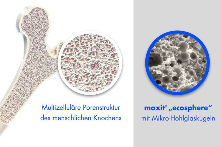 Das Dämmsystem Ecosphere von Maxit ist Ergebnis eines langjährigen Forschungsprojektes und wurde vom Bundesministerium für Bildung und Forschung (BMBF, Berlin) gefördert. „Wir orientieren uns mit Ecosphere am Beispiel der Natur, die jede Form der Überdimensionierung vermeidet. Das zeigt sich etwa beim Aufbau menschlicher Knochen, die aus multizellulären Porenstrukturen bestehen“, erklärt Friedbert Scharfe, Entwicklungschef bei Maxit.