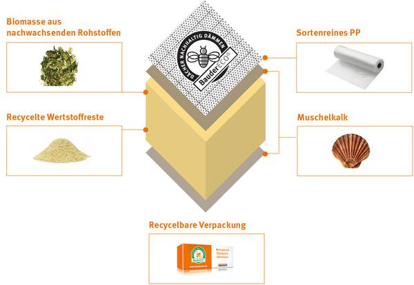 Bauherren und Architekten fordern heute Dämmstoffe, die Energie einsparen, das Klima schützen und ein gesundes Raumklima unterstützen. Hersteller wie Bauder erfüllen diesen wachsenden Bedarf mit Neuentwicklungen wie dem Dachdämmstoff "BauderECO S" für die Aufsparrendämmung. Das Material besteht zu großen Teilen aus Biomasse - also Reststoffen aus der Landwirtschaft -, recycelten Wertstoffresten und weiteren natürlichen Bestandteilen wie Muschelkalk. Tabu sind dagegen Stoffe, welche die Raumluft belasten könnten, wie etwa Formaldehyd, Bindemittel oder sonstige Zusatzstoffe beispielsweise gegen Schädlinge oder Schimmel. Aufgrund der natürlichen Rohstoffe lassen sich die Dämmplatten für das Dach nach mehreren Jahrzehnten der Nutzung somit auch mühelos recyceln. Unter www.baudereco.de