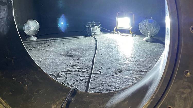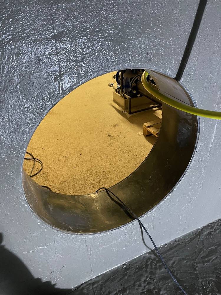 Im Bereich des Rohranschlusses wurde der Untergrund zunächst gereinigt und grob angeschliffen, bevor mit Triflex Primer 791 grundiert wurde.