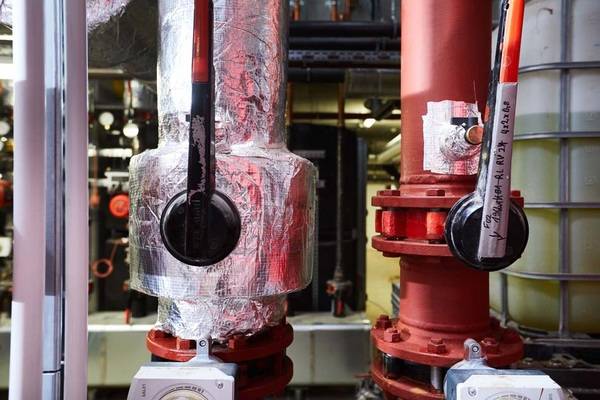 Große Sorgfalt musste das Team um Alexander Völker allerdings auch hinsichtlich der Brandabschottungen walten lassen. Zahlreiche unterschiedliche Leitungsarten mit diversen Durchmessern mussten nebeneinander durch Versorgungsschächte geführt und sicher abgeschottet werden. Der Profi entschied sich für die Arbeit mit Conlit-Abschottungen und für die Streckenisolierung der warmgehenden Rohrleitungen mit Rockwool 800-Rohrschalen.
