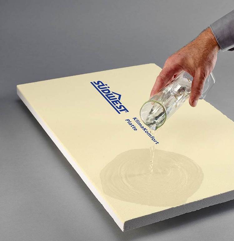 Die Perlit-Platten nehmen bis zu 13,7 Liter Wasser pro Quadratmeter auf.