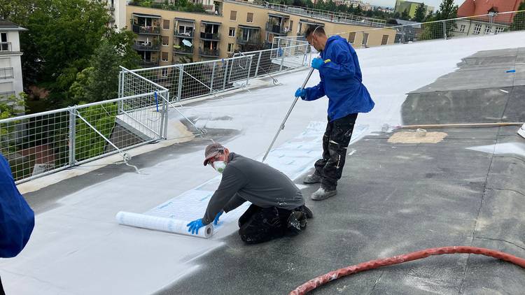 Triflex Sam: Abdichtung im Sprühverfahren für Spitzdach