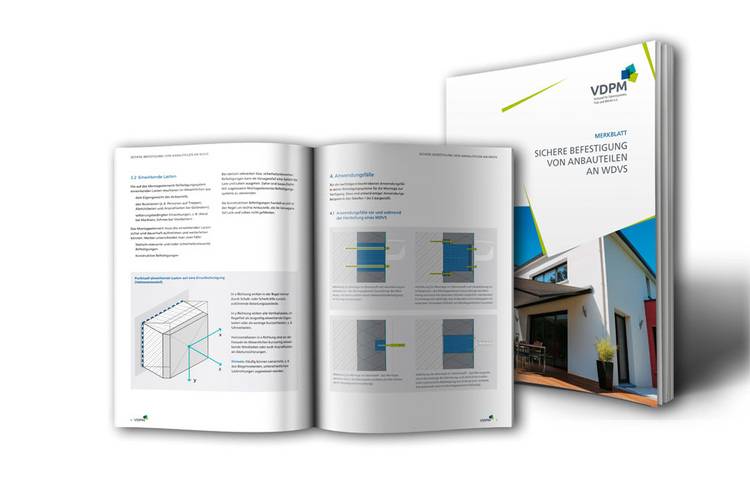 Der Verband für Dämmsysteme, Putz und Mörtel (VDPM) hat das Merkblatt „Sichere Befestigung von Anbauteilen an WDVS" veröffentlicht. Erarbeitet wurde es von der gleichnamigen Projektgruppe im VDPM-Arbeitskreis Fassadendämmsysteme.