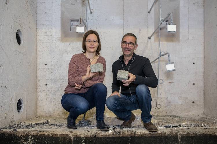 «Wir stellten gemeinsam mit Willi Senn, dem Entwicklungsingenieur bei Isofloc, eine Reihe von Versuchen an und verbanden die Dämmfasern mit unterschiedlichen Zusatzstoffen», berichtet die Forscherin. Zugleich lief die Suche nach dem geeigneten «Startschuss», der die Fasern von einem Moment zum nächsten verbindet. Erhitzen mit Dampf? Mit Infrarotstrahlung? Über magnetische Induktion? Schliesslich fand sich der gewünschte Stoff – eine Substanz aus der Lebensmittelindustrie. Laborversuche an der Empa und bei der Isofloc AG in Bütschwil zeigten auch im Brandfall eine zuverlässige Verbindung des Zelluloseflockengefüges.