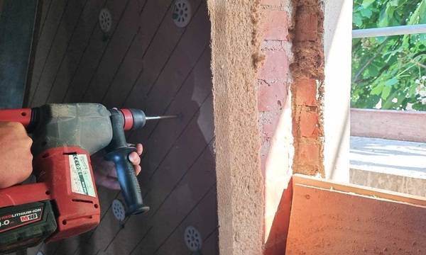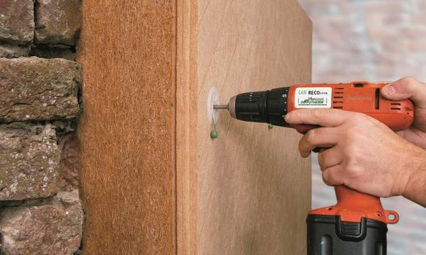 Für die Dämmung des Heubodens erwies sich das Holzfaser-Dämmsystem UdiReco vom Hersteller UdiDämmsysteme als passende Lösung. Die biegsamen Platten verfügen über eine weiche Seite, die sich an die Mauer schmiegt und so unebene Ziegelwände bis zu einer Differenz von zwei Zentimetern ausgleichen kann. Ein Stelldübel mit integriertem Teller drückt die Dämmplatte in die richtige Position. Beim Verschrauben krallen sich die Widerhaken des Dübels dann in den Dämmstoff. Die Holzfasern werden so unter Aufnahme hoher Zugkräfte an die Wand gepresst.