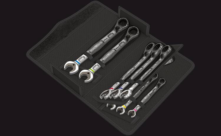 Der Maul-Ringratschenschlüssel Joker Switch von Wera bietet eine um 15° abgewinkelte Ringseite mit Umschalthebel für einen schnellen Drehrichtungswechsel.