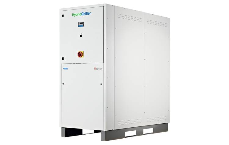 Adsorption und Kompression in einem Gerät: Der HybridChiller von Riedel nutzt Abwärme als Energiequelle und gleicht u.a. Spitzenlasten durch den Kompressor aus.