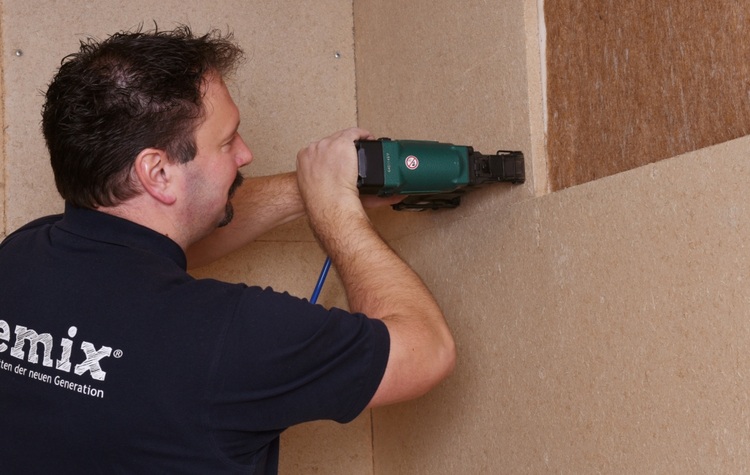 Will man räumliche Flexibilität und geringe statische Belastung miteinander verbinden, so bieten sich als Alternative Holzkonstruktionen mit einer Lemix-Beplankung an. Trockenbauwände mit Lehmplatten sind zwar schwerer als Wände mit Gipskartonplatten, bieten jedoch hinsichtlich bauphysikalischer Eigenschaften wie Schall- oder Brandschutz ähnliche Spitzenwerte wie Massivwände - dies bei deutlich geringerem Gewicht“, erläutert Hart-Produktmanager Sven Eulenstein.