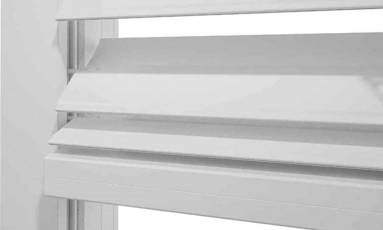 Das Raffstoresystem LS Dark basiert auf einer Weiterentwicklung der Lichtleitlamelle LS 80 von Alukon. Diese verfügt über eine besonders designte Lamellenkontur mit einer vordefinierten Lamellenstellung von 20° und ermöglicht dadurch zu jeder Tages- und Jahreszeit eine optimale Lichtnutzung im Raum sowie einen guten Durchblick nach außen – und das bei gleichzeitiger Blendfreiheit. Nun kann die Lichtleitlamelle LS 80 mit dem Raffstoresystem LS Dark kombiniert werden, womit eine Verdunkelung des Raumes möglich wird.