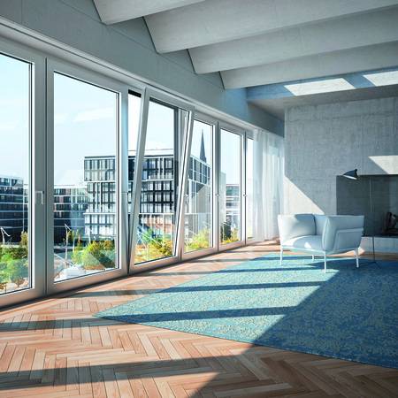 TipTronic SimplySmart Fenster lassen sich manuell per Griff oder Raumtaster und über mobile Endgeräte wie Tablets und Smartphones bedienen – eine gute Lösung für schwer oder nicht zugängliche Fenster wie Oberlichter. Mit der Powermanagement-Funktion lassen sich bis zu 30 Fensterelemente mit nur einem Netzteil betreiben. Über die Systemplattform Schüco Building Skin Control können die Fensterelemente zudem komfortabel angesteuert und über Gateways in Gebäudeleitsysteme integriert werden. Das Fenster wird so zum integralen Bestandteil des intelligenten Gebäudes.