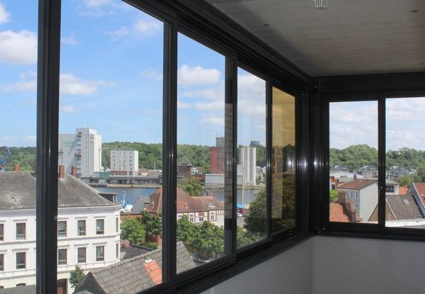 Balco Access umfasst einzelne Schiebeelemente auf der Brüstung, die eine ausreichende Öffnung der Verglasung und somit eine Entrauchung im Brandfall gewährleisten. Die einzelnen Fenster bestehen aus Float-Klarglas und sind in einem Rahmen aus Aluminiumprofilen eingefasst. Jedes Fenster verfügt über eine eigene Laufspur. Stehend gelagert auf Rollen in der Rahmenkonstruktion bewegen sich die Scheiben leichtgängig und leise. Durch Bürstendichtungen ist die Verglasung dicht gegen Witterungseinflüsse wie Regen und Treibschnee. Zugleich ist das System mit einer Zwangsbelüftung ausgestattet, die Zugluft vermeidet und die Kondensatbildung an den Scheiben minimiert. Zur Reinigung lassen sich alle Fenster öffnen und auf jeder Position um mindestens 90 Grad nach innen schwenken. Komfort bietet das System auch hinsichtlich des Schallschutzes: Im geschlossenen Zustand reduziert die Verglasung mit einer Schalldämmung um circa 21 Dezibel den Geräuschpegel im Gebäude.