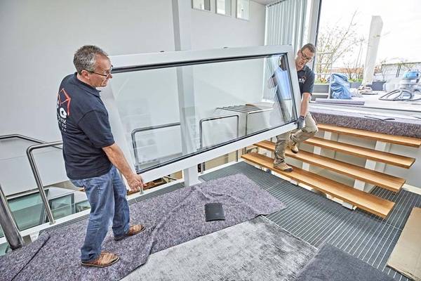 Mit Anlieferung, Ausbau und Montage benötigten die Fensterinstallateure insgesamt 10 Stunden. Ein Aufwand, der sich gelohnt hat, denn die neue Balkontür ist laut Hersteller nicht nur deutlich stärker isolierend als ihr Vorgänger, sie ist zudem weitaus freundlicher in der Bedienung. War die alte Holztür mit einem maroden altbackenen Metallscharnier nur nach außen zu öffnen, verfügt die Aluhaus-Tür über einen Beschlag von Winkhaus mit Türdrücker für innen und außen, der beidseitig abschließbar ist. Und natürlich öffnet die Tür nun nach innen, sodass die Terrasse auch im Winter bei Schnee begehbar ist.
