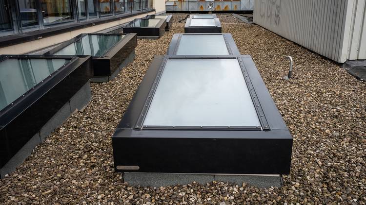 Unabhängig von der Feuerwiderstandsdauer kann das Brandschutz-Flachdach Fenster auf Dächern mit einer Neigung bis zu 15 Grad montiert werden. Es bietet neben der Verhinderung von Brandweiterleitung auch einen optimierten Wasser- und Schmutzablauf durch 5°-Neigung des Elements.
