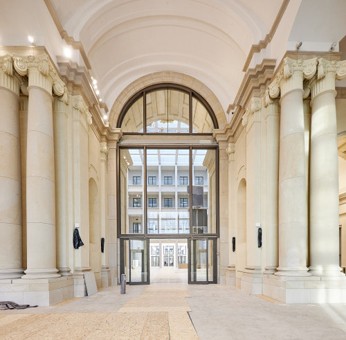 Die Höhe des Eosander-Portals macht seinem Namen als Triumphbogen alle Ehre. Entsprechend waren auch bei der Verglasung große Abmessungen gefragt. Weil Vetrotech Saint-Gobain in der Lage ist, Brandschutzgläser in großen Größen herzustellen, konnte das Unternehmen die Architekten von Beginn an bei der Planung unterstützen und beraten.