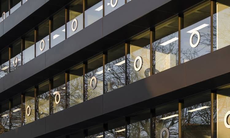 Bei dem Glas setzen Planer und Fassadenbauer auf eine Dreifachverglasung von Schollglas mit dem Sonnenschutzglas GEWE-therm Sun mit SunGuard SNX 60. Das Beratungsteam von Schollglas hatte zu dem dreifach silberbeschichteten Sonnenschutzglas geraten, weil es lichtdurchflutete Innenräume ohne Aufheizung durch starke Sonnenstrahlung erlaubt.
