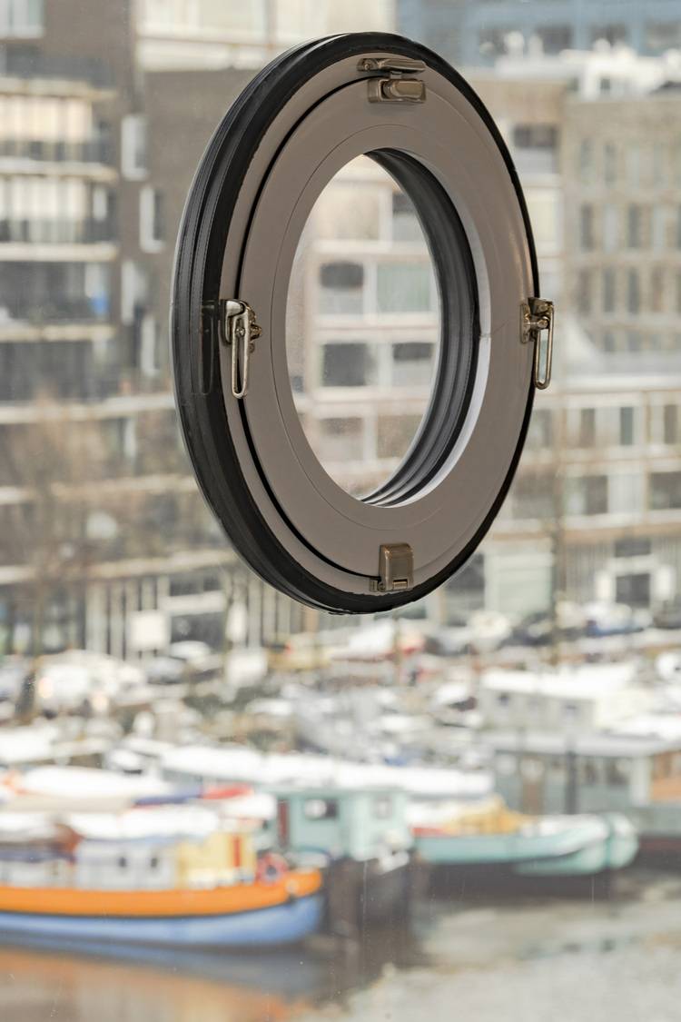 Als Anspielung auf die Schifffahrtsvergangenheit des Stadtbezirks ließen die Architekten in jedem zweiten Glaselement einen kreisrunden Öffnungsflügel einarbeiten. Auf jeder Etage wurden in Augenhöhe 362 Rundfenster eingebaut, die mit einem runden Drehflügel leicht zu öffnen sind. Die Fensterflügel der Bullaugen wurden speziell für dieses Projekt entwickelt. Sie sind mit einem Randverbund aus Silikon gesichert und wurden schwimmend in die kreisrunden Flächenausschnitte der Festverglasung eingesetzt.