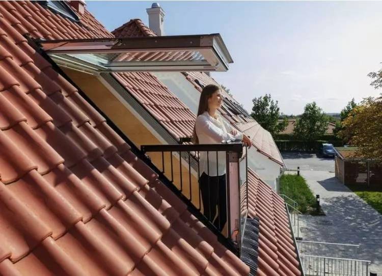 Soll die oberste Etage eines Hauses mit einem Außenbereich ausgestattet werden, muss es sich dabei nicht zwingend um einen Dachbalkon handeln. Eine andere Möglichkeit ist der Bau eines Dachaustritts. Dabei handelt es sich um ein ausklappbares Dachfenster. Beim Öffnen des Fenstern entsteht eine kleine Balkonfläche mitsamt Geländer. Schon hat man eine kleine, aber feine Fläche, um etwas Sonne und frische Luft zu genießen.