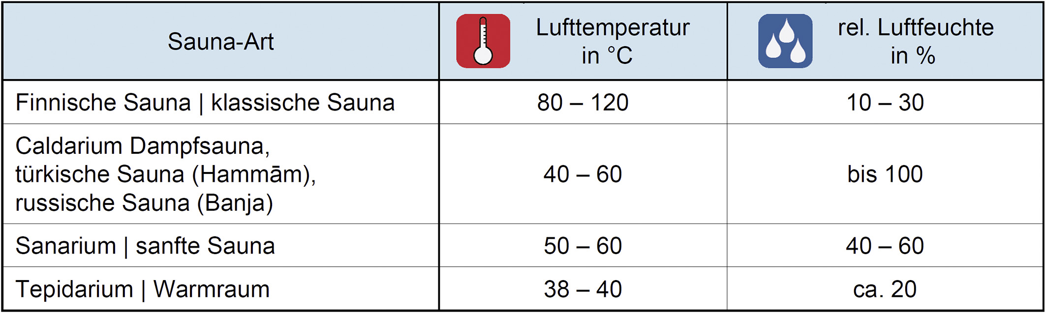 Tabelle 1: Die Saunaarten mit ihren klimatischen Randbedingungen