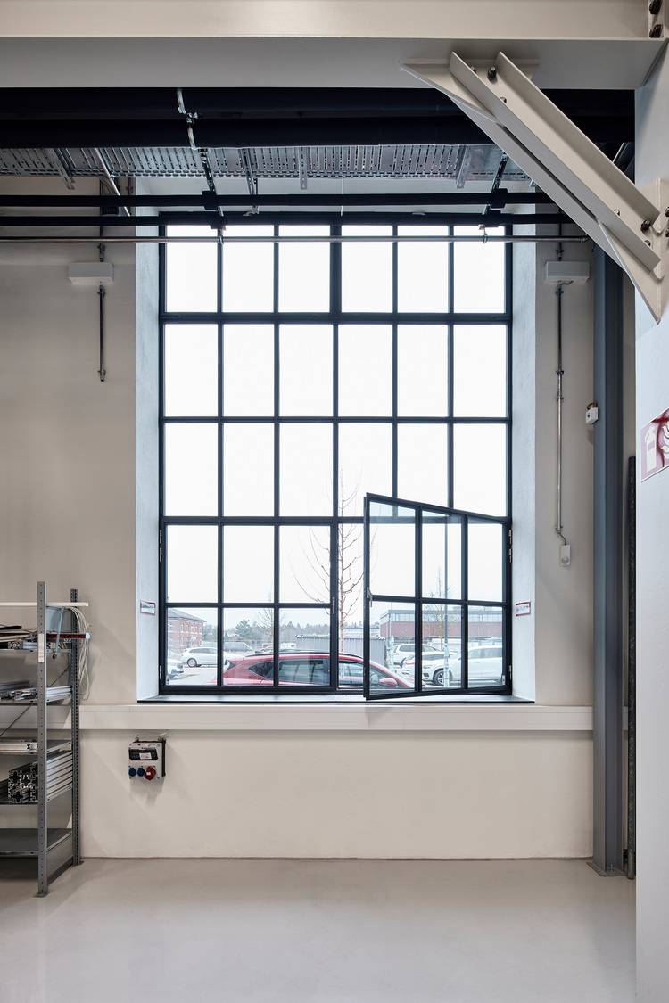 Eine besondere Herausforderung war die Ertüchtigung bzw. Erneuerung der einfach verglasten Stahlfenster. Diese wurden zum Teil instandgesetzt und innen um eine thermische Fensterebene ergänzt.
