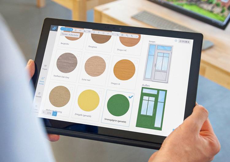 „Wir haben unsere eigene Fensterbau-Software genommen und eine touch-fähige App daraus gemacht, welche unsere Außendienstmitarbeiter künftig vor Ort beim Kunden benutzen können. Der Kunde kann dann seine Fenster sogar selbst zeichnen. Am Ende wird ein Foto der Fassade gemacht, die Fenster eingesetzt und die bevorzugte Außenfarbe eingestellt. Ganz schön cool, oder?“