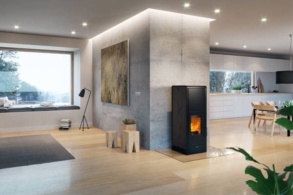 Der Kaminofen Contina von Rika hält dank Speicherstein die Wärme bis zu 24 Stunden und gibt diese kontinuierlich an den Raum ab.