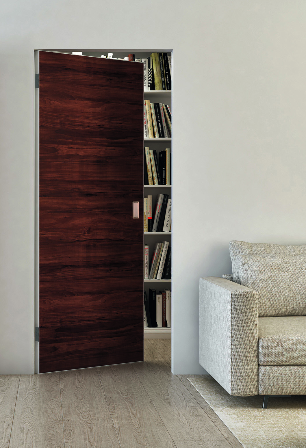 Um dem Architekten mehr Flexibilität bei der Raumgestaltung zu geben, bietet Kontura unterschiedliche Öffnungsrichtungen an. Die Tür kann durch Drücken oder Ziehen geöffnet und links sowie rechts angeschlagen montiert werden. Auch hohe technische Anforderungen, sodass die Zarge nahezu unsichtbar ist und das Türblatt flächenbündig in der Wand verschwindet, meistert das intelligente System. Die Zarge verfügt über eine Anputzkante, die einen perfekten Abschluss ermöglicht. Alle Aussparungen für Türbänder und Schließbleche sind werksseitig ausgeführt, sodass die Montage des Türblatts problemlos gelingt.