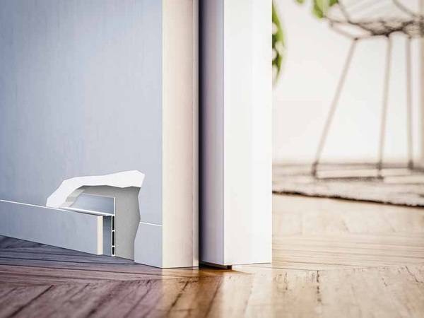 Aber nicht nur im Design überzeugt die Serie von Eclisse. Auch bei den technischen Details punktet sie mit cleveren Lösungen. So ist die Zarge im Durchgangsbereich an allen drei Seiten mit einer speziellen Schutzauflage gegen Schmutz ausgestattet. Während der Bauphase haben so Staub und Verunreinigungen durch Farbe oder Spachtelmasse keine Chance. Sobald alle Installationsarbeiten abgeschlossen sind, kann die Kunststoffauflage entfernt werden.