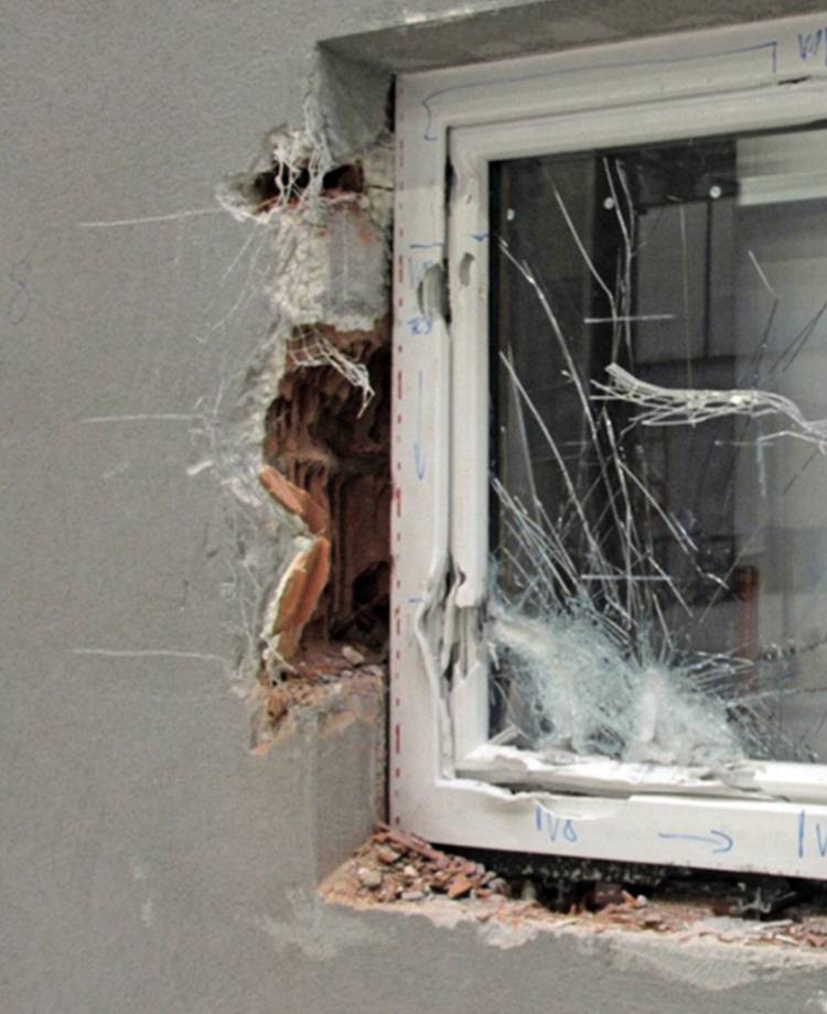 Bauherren fordern aber Sicherheit genauso wie Energieeinsparung. Das ift Rosenheim bearbeitete daher das Forschungsvorhaben „Einbruchhemmung mit hochwärmedämmendem Ziegelmauerwerk – Analyse des Ist-Zustandes, Erarbeitung von Konstruktions- sowie Nachweiskriterien“. Kernstück der praktischen Untersuchung war die Prüfung nach DIN EN 1627 von bereits klassifizierten einbruchhemmenden Bauelementen der Widerstandsklassen RC2 und RC3 in unterschiedlichen Wänden aus wärmedämmendem Ziegelmauerwerk.