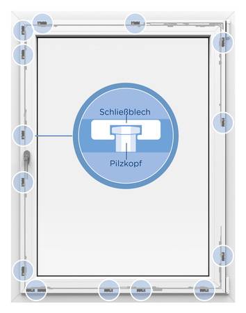 Das universelle Bauteilprogramm mit einbruchhemmenden Pilzkopfverriegelungen bietet für alle Kunststoff- und Holzfenster, die sich drehen und kippen lassen, mit Nutmittenlagen von 9 und 13 mm und einem Flügelüberschlag von 18 und 20 mm eine passende Lösung. Das gilt auch für Stulpfenster.