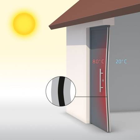 Der neue Steg schafft eine anpassungsfähige Isolierzone zwischen Außen- und Innenschale einer Metalltür. Die ineinandergreifenden Teilprofile gleichen die temperaturbedingte Längenausdehnung aus. Die Konstruktion sorgt zugleich für eine hohe Querzugfestigkeit.