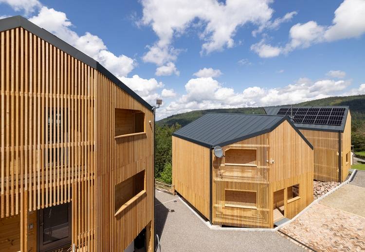 Die verwendeten Baustoffe Holz und Estrichziegel spiegeln die Naturnähe der Gebäude wider.