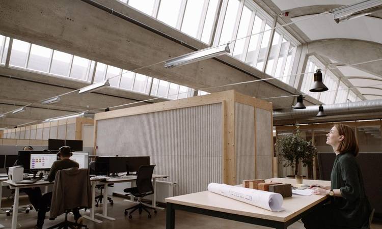 Das renovierte Büro von Sweco zeigt, wie ein altes Fabrikgebäude mit natürlichen Lichtquellen zu einem hellen und angenehmen Büro werden kann. Da viele Menschen heutzutage 90 Prozent ihrer Zeit in Innenräumen und einen Großteil davon am Arbeitsplatz verbringen, ist es umso wichtiger, auch in Bürogebäuden für gute Tageslichtverhältnisse zu sorgen.