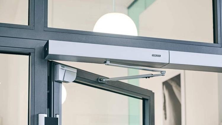 Bei zweiflügeligen Türen kam das Türschließersystem Geze TS 5000 R-ISM mit integrierter Rauchmeldezentrale und Schließfolgeregelung zum Einsatz. Im Brandfall schließt es beide Türflügel zuverlässig in der korrekten Reihenfolge – eine zwingende Voraussetzung für funktionierende Feuer- und Rauchschutzabschlüsse. Dank Öffnungsdämpfer werden die Türen bei zu viel Schwung sanft abgebremst, der hydraulische Endschlag sorgt für ein leises, aber sicheres Schließen. Die Frontverstellung des Türschließersystems ermöglicht eine schnelle, präzise Abstimmung der Schließkraft – das spart Zeit bei der Installation.